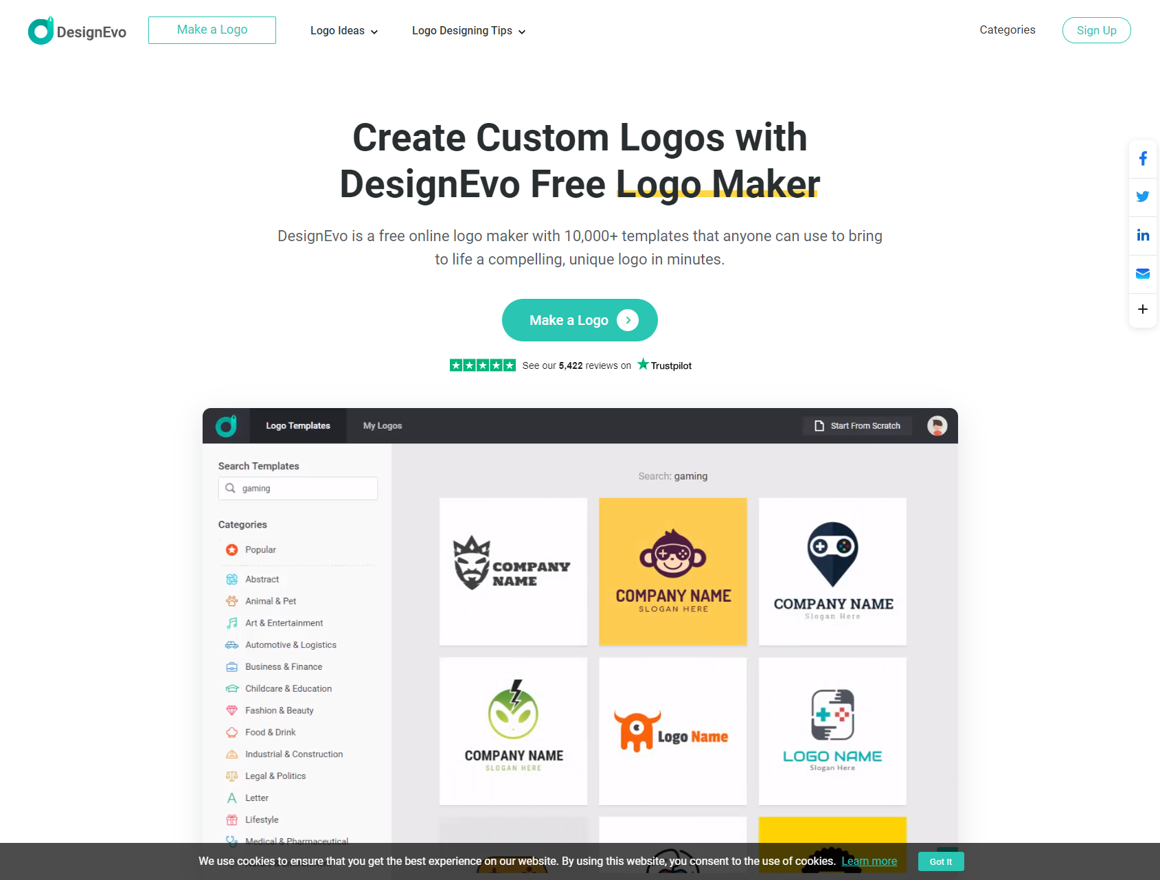 DesignEvo is an online AI logo maker popular for its ease of use and stylish templates.